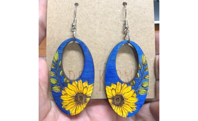 These beautiful sunflower earrings are laser engraved on a lightweight wood and hand painted by me to add color to this beautiful design. These are great for any sunflower lovers. They are finish with nickel free fishhook ear wires.