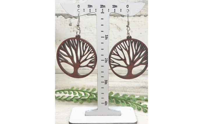These intricate family tree earrings are cut from a beautiful sapele wood. They are lightweight and sure to go with several pieces in anyone's closet. Great gift for any occasion. This set is finished with nickel free fishhook ear wires.